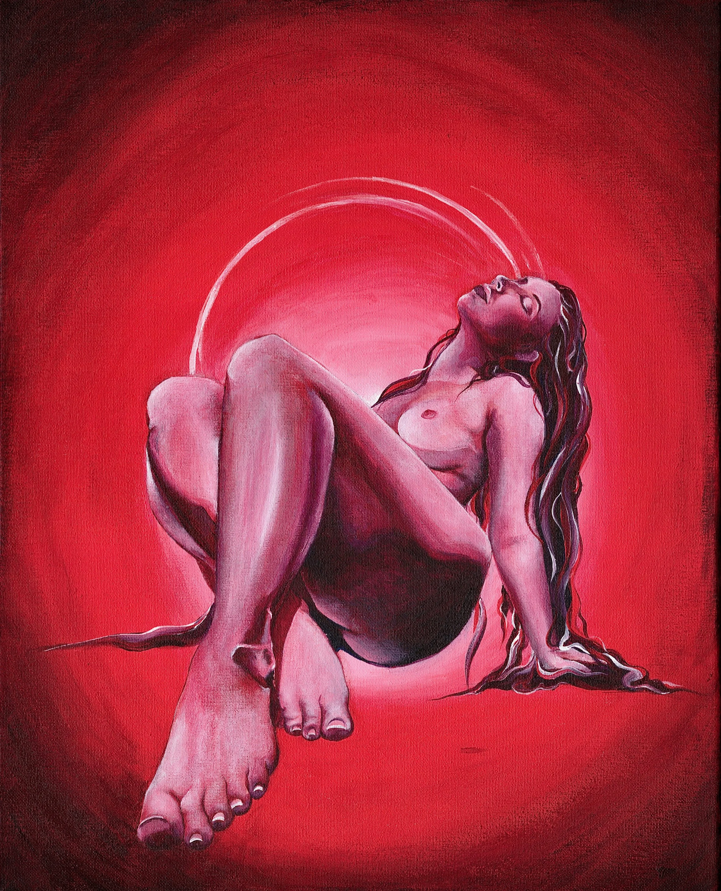 The first fully solely synesthesia lead painting I created. The image I saw the first time I listened to Kehlanis song “Sucia” on her 2024 album Crash. When I listen to this song, I’m transported to this sensual energetic space where I meet this woman in complete surrender. This piece is where I went and who I met when I listened to this song for the first time.